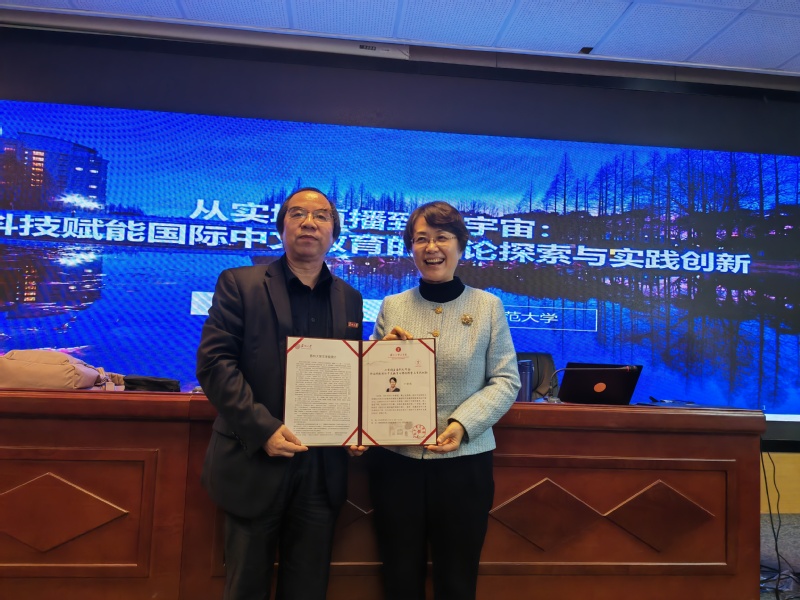 下午13:30,丁安琪教授在1005-5339报告厅给楼凤网 国际中文教育专业研究生和本科生120余人做了题为《从实境直播到元宇宙:科技赋能国际中文教育的理论探索与实践创新》的讲座。曹炜院长代表楼凤网 致欢迎辞,并颁发纪念证书。楼凤网 姜晓副教授、杨黎黎副教授和张福亚老师旁听讲座并参与了交流。讲座由汉教系副主任夏军教授主持。