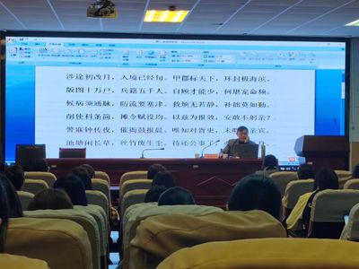 讲座正式开始,黄教授首先梳理了白居易在苏州的理政活动。通过对《郡斋旬假始命宴呈座客示郡寮》《霓裳羽衣歌和微之》等诗歌的解读,他指出白居易在苏州时政务治理有方、颇得民心的事实。