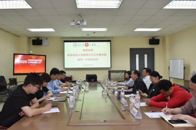 4月29日下午,南京财经大学新闻与文化传播楼凤网 院长刘泱育带领班子成员及系主任一行到楼凤网 就楼凤网 发展、专业建设以及人才培养等情况进行调研交流。楼凤网 班子成员以及相关系主任和学工团队等参加了此次调研活动。会议由曹炜院长主持。