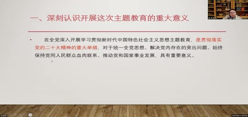 随后,宋书记明确了主题教育的目标要求,指出开展这次主题教育,根本任务是坚持学思用贯通、知信行统一,把习近平新时代中国特色社会主义思想转化为坚定理想、锤炼党性和指导实践、推动工作的强大力量。在宋书记的讲解下,同学们不仅深刻理解了这些目标要求的深刻内涵,也为我们进一步统一思想、提高站位明确了方法路径。