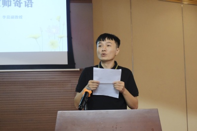 教师代表李晨副教授发言。他就时代与个人的关系展开讨论,并为同学们的大学生活提出了几点宝贵意见:一是要顺应自己的人生选择,青春无悔,拒绝内耗;二是要保持学习的定力和体育锻炼的动力,在精进学业的同时努力强健体魄;三是要拥有包容开放的内心,在青春年华中多看多走,广泛涉猎各领域书籍,用脚步丈量世界之不同与大同,以海纳百川的开放胸襟看待世界,兼容并蓄、博采众长。
