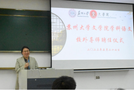 颁发仪式结束后,校外导师代表发言。苏州中学正高级教师程振理指出:“作为导师要做到‘为人师表’,就是要做学生的德育导师、专业导师、人生导师。”接着分享了做研究生导师的经验:立德树人方面常与学生沟通交流、着眼能力提升上多给学生开列书单、以专业眼光指导学生论文设计、尊重学术规范指导学生严谨写作,等等。