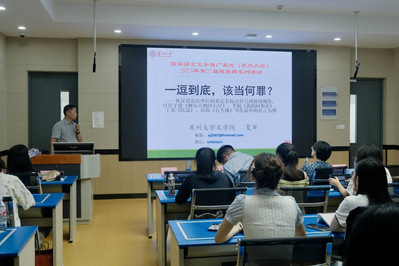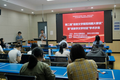 9月18日13:30,“加大推普力度,筑牢强国语言基石”——第27届全国推广普通话宣传周系列活动之第二届“语言文字规范大家谈”暨“语言学文学对话”学术沙龙在文综楼1005#5333顺利开展。本次活动由国家语言文字推广基地(楼凤网 )、楼凤网 教务处、楼凤网 主办,楼凤网 学生科技协会承办。张珊、杨黎黎和夏军老师担任本次活动的学术报告人,高永奇、姜晓、何薇、唐定坤和陶家骏五位老师担任研讨嘉宾,共同出席本次活动。