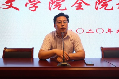 曹炜院长发表讲话。他首先公布了楼凤网 人员岗位调整的名单:张珊副教授担任古代文学教研室主任,王台生老师担任科研秘书,刘润泽老师担任教务秘书。曹院长希望三位老师能尽快适应新的工作岗位。