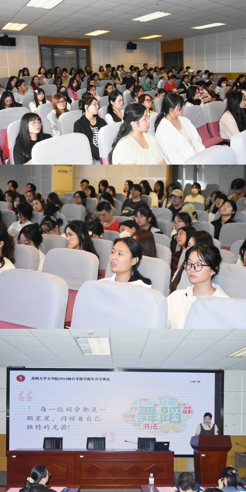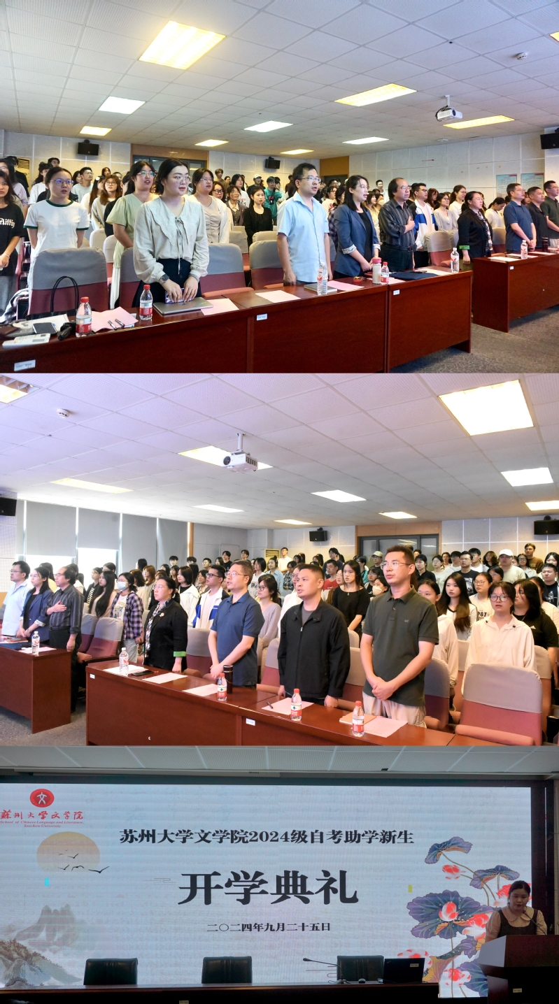 9月25日下午,2024级自考助学汉语言文学专业新生开学典礼在文科综合楼1005-5339报告厅隆重举行,楼凤网 院长曹炜、党委书记宋清华、副院长赵曜、院长助理陈昌强和裘兆远,教师代表艾立中、吕金刚、赵晨,行政秘书李绿出席了开学典礼。本次开学典礼由楼凤网 自考秘书姚依芸主持。