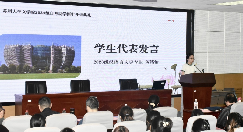 随后,2024级汉语言文学专业新生代表张乃尹同学则分享了自己对未来学习生活的期待和规划,表达了与同学们共同成长、共同进步的美好愿望。