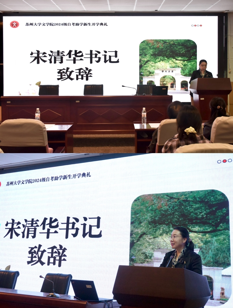 随后,宋清华书记上台致辞,向新同学们表示了最热烈的欢迎和最诚挚的祝福。她以“学会感恩、思考、学习、做事”四个“学会”,引导大家珍惜学习时光,勇于探索未知,培养创新思维和实践能力。