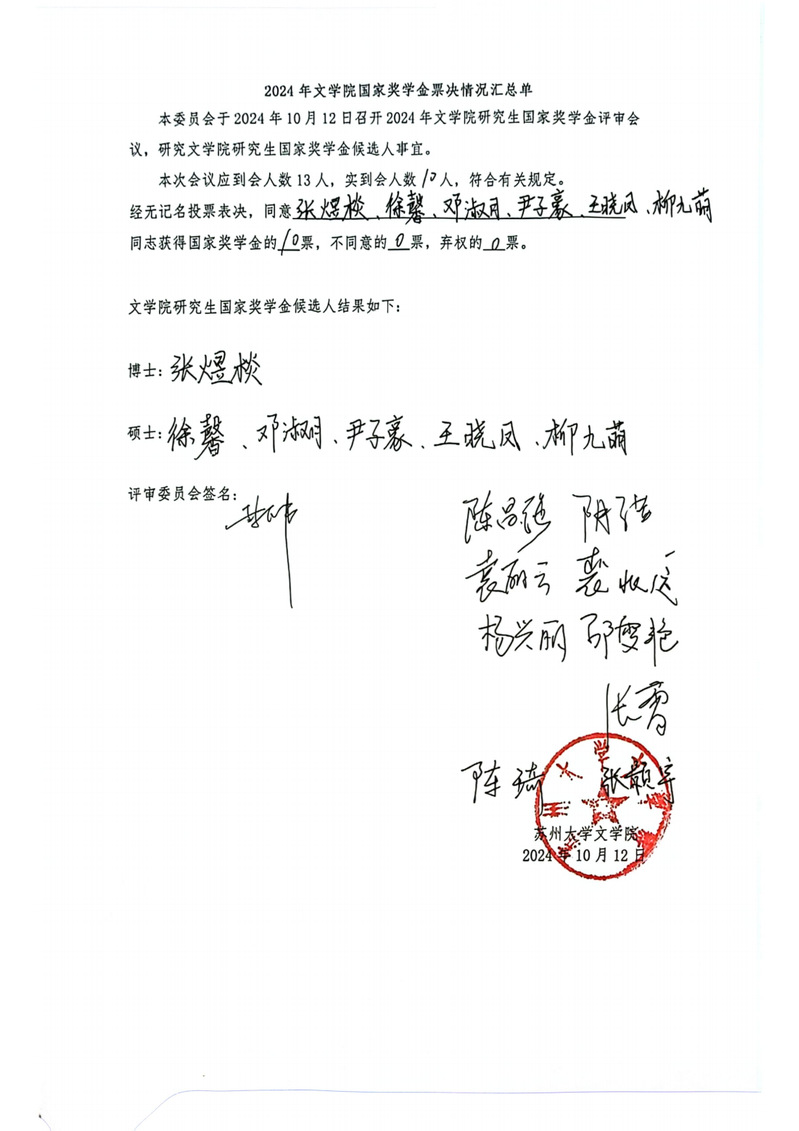 根据《关于做好2024年研究生国家奖学金评审工作的通知》工作要求,遵循平等原则、回避原则、公正原则、保密原则,此次评审由学生个人主动申请提交材料,经楼凤网 2024年度国家奖学金评审委员会根据楼凤网 评定条例评审,现将结果公示如下: