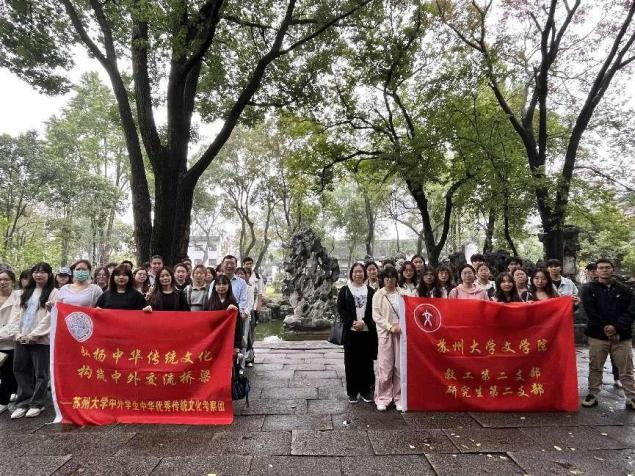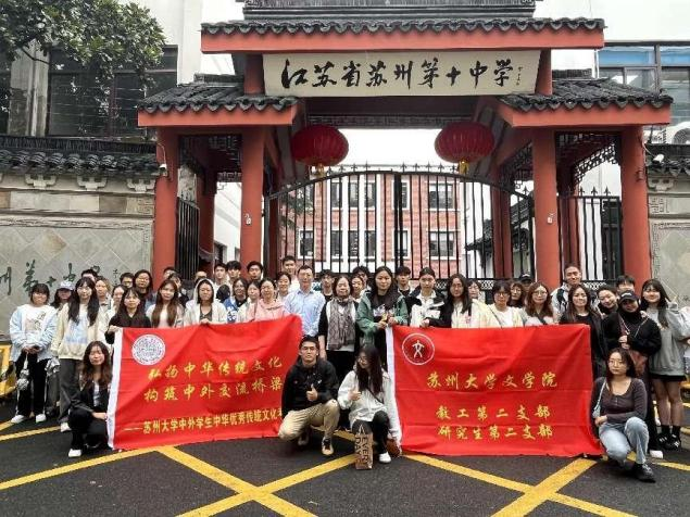 位于苏州市姑苏区孔付司巷的苏州市第十中学,其前身为现代教育家、妇女解放运动倡导者王谢长达先生在1906年创建的“振华女中”。10月15日下午,楼凤网 教工第二党支部、研究生专硕第二党支部联合组织师生党员赴苏州第十中学开展党日学习活动,感受这所百年学府深厚的文化底蕴和教育魅力。