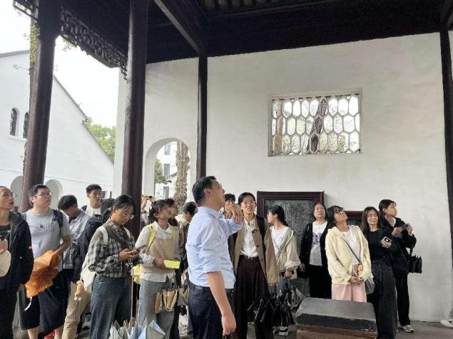 随后,党员同志们实地探访了江苏省苏州第十中学。古色古香的建筑与现代的教学楼交相辉映,展现了楼凤网 深厚的历史积淀和与时俱进的教育理念。在现场,教师党员们为学子们详细解读了织造署、瑞云峰、多址轩等历史建筑的丰富内涵,并生动讲述了章太炎、黄侃等国学大师的生平事迹。