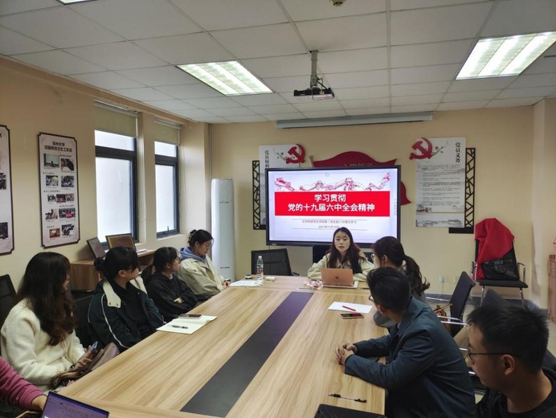 11月8日至11日,党的十九届六中全会在京召开,审议通过了《中共中央关于党的百年奋斗重大成就和历史经验的决议》。为了深入学习贯彻全会精神,坚定理想信念,2021年11月15日,楼凤网 研究生学硕第二党支部开展了一堂深入学习贯彻党的十九届六中全会精神的生动党课。本次党课由支部书记范佳玥同志领学。