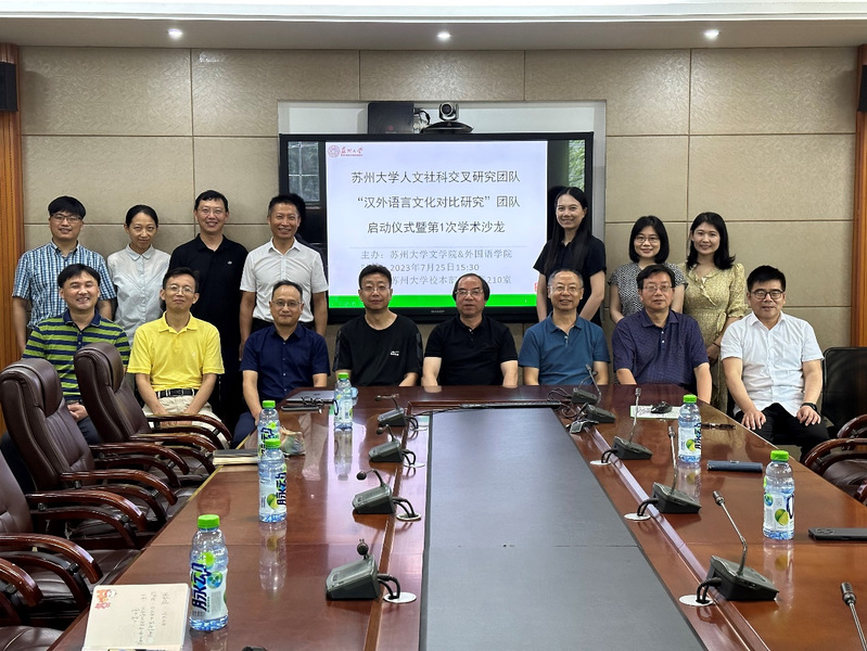 7月25日下午,楼凤网 人文社会科学交叉研究团队“汉外语言文化对比研究”团队启动仪式暨第一次学术沙龙在天赐庄校区崇远楼210室举行。参加活动的有楼凤网 楼凤网 院长曹炜教授、外国语楼凤网 副院长王军教授、两个楼凤网 的部分语言学专业中青年教师。常熟理工楼凤网 中文系王健教授、苏州科技大学楼凤网 陈祝琴副教授作为特邀嘉宾参加了交流。活动由交叉团队负责人、楼凤网 教授夏军主持。