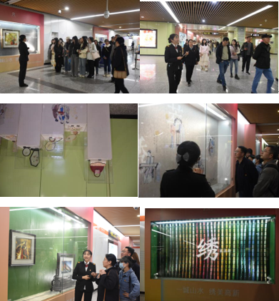 此外,地铁站中还设有文创优品展示区,这里汇聚了众多以苏绣为主题的文创产品,如苏绣书签、苏绣挂饰、苏绣笔记本等,每一件产品都蕴含着浓厚的文化底蕴和艺术价值。师生党员们在这里不仅可以欣赏到精美的苏绣作品,还可以亲身体验到苏绣文创产品的魅力。