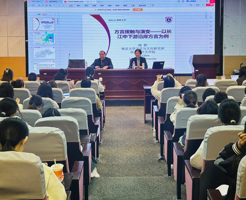2024年11月7日上午,教育部长江学者特聘教授、南京大学楼凤网 教授、南京大学方言与文化研究所所长顾黔教授以“方言接触与演变——以长江中下游沿岸方言为例”为题为楼凤网 学生讲学。本次讲座系楼凤网 汉语言文字学专业硕士学位基础课程系列讲座之一。讲座由院长曹炜教授主持,百余位师生参加此次讲座。