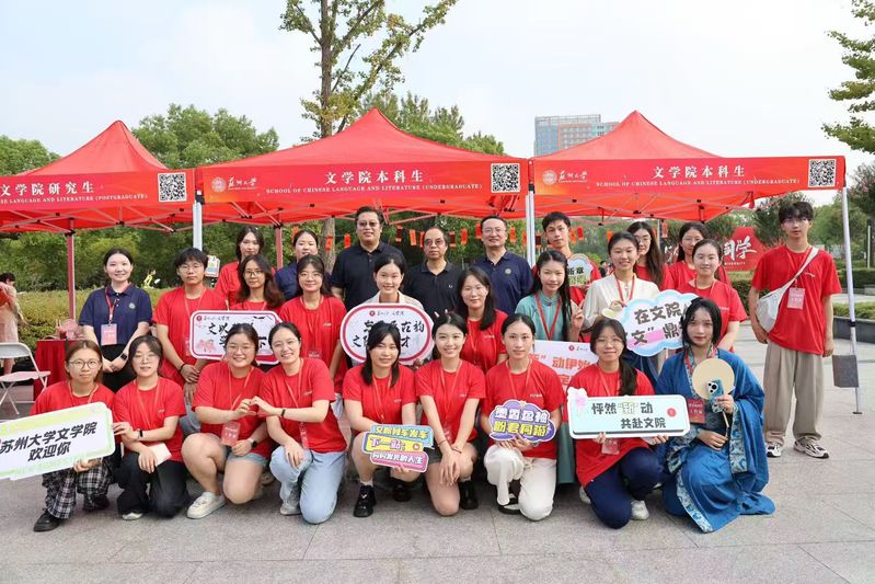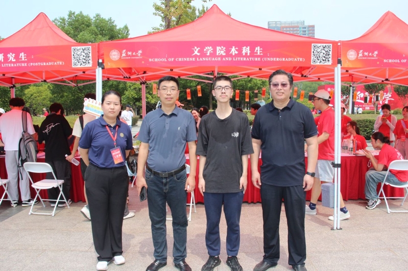曹炜院长早早来到迎新现场,详细了解报到情况,看望在酷暑中工作的师生、志愿者们,并对整体组织工作予以肯定。曹炜院长特别关注到,汉语言文学(拔尖创新班)的张忆文是一名“苏二代”,在与张忆文及其家长的交流中,学生家长表示:“送孩子来当年读书的地方,既亲切又激动。希望她在这里学有所成,走出属于自己的精彩之路”。