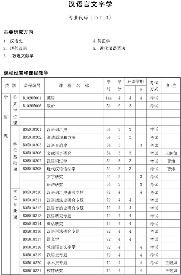 汉语言文字学博士生培养方案