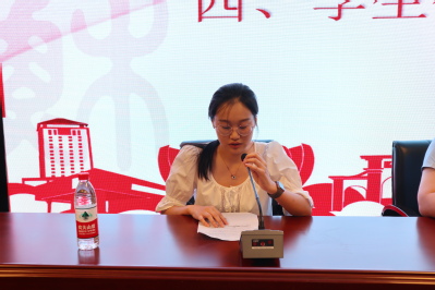 随后是教师代表高群和学生代表周雨微发言,高群老师以温柔的话语鼓励同学们带着思考去参加实习调研以便于迅速确定调研范围,在未来将其与毕业论文及考研等方面结合起来,写出有质量的调研报告。周雨微同学站在学生的角度上提出同学们在教育岗位上应该拿出负责任态度,不断学习和提升自身能力增加知识储备,虚心求教。“教书育人路,追梦赤子心”,周雨微同学真挚地预祝每位同学的教育实习取得圆满成功。