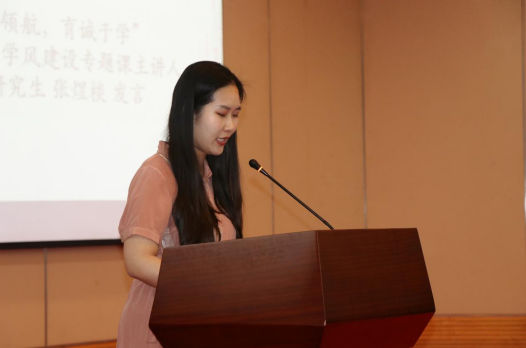 最后,2023级博士李慧文作为新生代表,从三个方面与同学们分享了完成新身份转变的感悟。一是星辰高远,唯爱可至。人生中有一段时光是同热爱的专业在一起,那是极为幸福的一件事。二是博物致知,文以化成。在研究生阶段要保持好奇心和探索欲,不仅要学习知识,还要培养自己的思辨能力,形成一套有效的思维体系和方法论。三是积思而尽远,致行以博大。做学术要能坐得住冷板凳,在心中给自己定一个长远的目标,这样才能在这个“内卷”和浮躁的社会中重循着自己的节奏淡然自处。