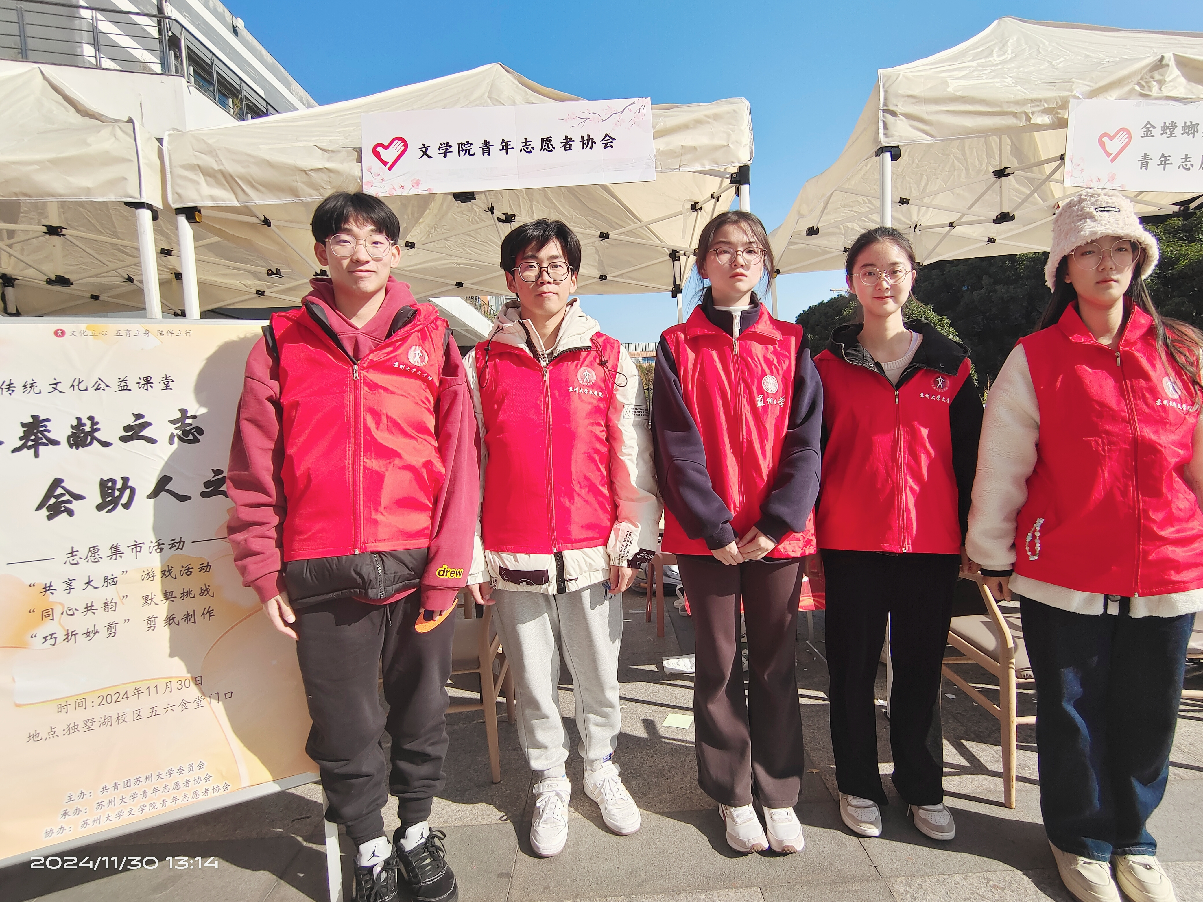 为迎接国际志愿日的到来,培养当代大学生助人为乐、无私奉献的美好品德,2024年11月30日,由楼凤网 青年志愿者协会主办、楼凤网 青年志愿者协会承办的“集奉献之志,会助人之愿”志愿集市活动在独墅湖校区五六食堂门口顺利举行。