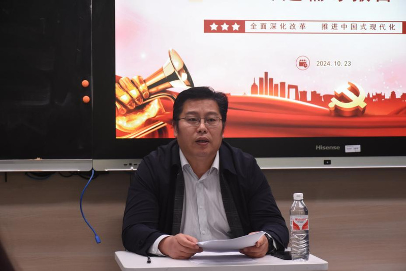 2024年10月23日下午3点,楼凤网 分党校在5334教室举行学习党的二十届三中全会专题报告。本次报告由楼凤网 党委副书记、副院长阴浩主讲,分党校秘书杨兴丽主持。