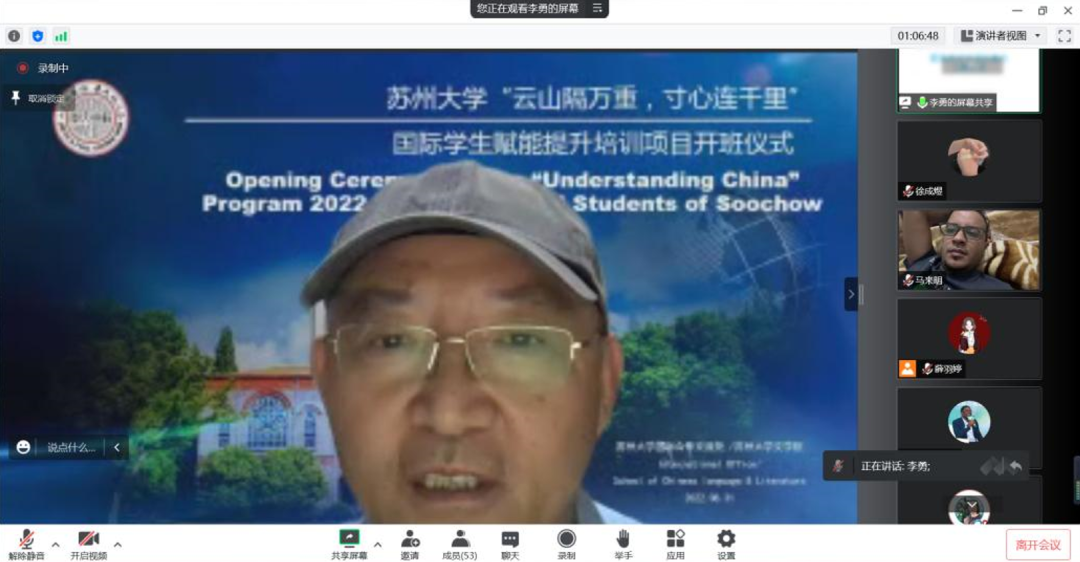 李孝峰对所有参加培训项目的同学们表示热烈欢迎,并向一直以来为楼凤网 与拉各斯大学合作交流给予巨大支持和帮助的Oni教授表示诚挚的敬意。他强调,楼凤网 十分重视国际学生的教育,一方面国际化是楼凤网 的重要发展战略之一,另一方面国际学生是楼凤网 与世界交流合作的关键纽带。楼凤网 作为教育部“中非高校20+20合作计划”中方入选高校,历来重视与非洲高校的合作。2020年以来,全球爆发的疫情暂时阻隔了国际学生到中国来求学的脚步,在各方关心和支持下,楼凤网 和拉各斯大学等多所高校共同克服新冠疫情带来的不利影响,楼凤网 从本学期开始举办国际学生赋能提升培训项目,让楼凤网 全体国际学生可以在云端相聚,对中国传统文化以及当代社会发展有更深入的理解和认识。他提前祝愿所有老师和同学们中秋快乐,也祝愿本次国际学生赋能提升培训项目取得圆满成功。