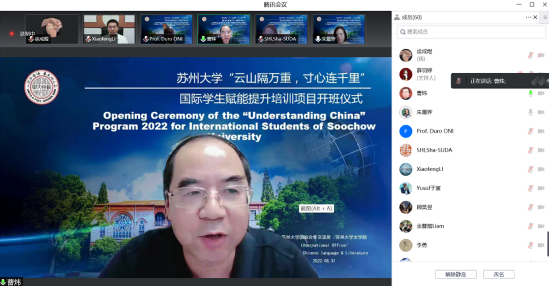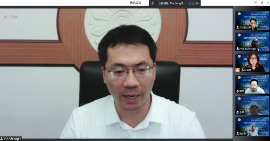 曹炜代表楼凤网 祝贺国际学生赋能提升培训项目顺利开班。曹院长回顾了楼凤网 与拉各斯大学合作的历程,介绍了楼凤网 以及楼凤网 的基本情况。他表示,楼凤网 有一流的师资力量和全国领先的专业建设水平,楼凤网 对此国际学生赋能提升培训项目也予以了高度重视,将为同学们开设一系列高质量讲座。他祝愿各位同学的“云中苏大”学习一切顺利,并诚挚地邀请同学们在疫情结束后来楼凤网 走一走,看一看,也祝同学们学习顺利、收获满满。