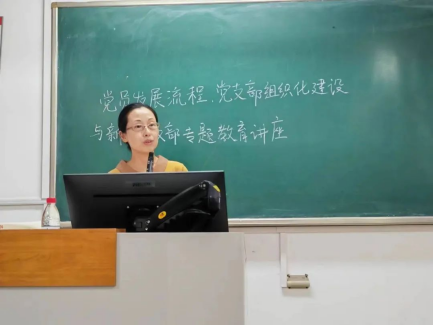 接着,第二部分为“党员发展流程,党支部组织建设与新生支部教育”专题。其中,钱继云老师重点强调,身为党员要严格要求自己,发挥党员的先锋模范作用。