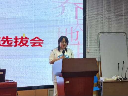 在班、党、团学生干部选拔环节,以2022级学硕班班长王美棋为代表的高年级各专业学干结合自身经历向大家分享了学生工作的经验和感想,帮助竞选者了解今后的学生工作。其中,2022级汉语国际教育班班长陈琦认为,一名合格的学生干部需要做到细心、和善且有责任心,她希望各位竞选者能够以轻松的心态站上竞选台,大胆说出自己的想法。
