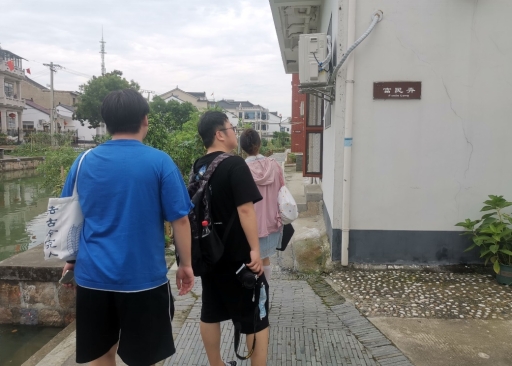 实践团成员们走在弄堂中,感受弄堂的长短,仿佛见证了开弦弓村农民自建房的变迁。上世纪80年代,村中的弄堂长度一般在50米左右,之后随着房屋的扩建,长度延伸,目前,全村超过100米的弄堂有7条,最长的超130米。团队成员们感受着弄堂保留的传统乡土风貌,在浓厚的文化气息中,路过一幢幢独具水乡特色的典雅民居,遇见一处处种满五颜六色鲜花的美丽庭院,深刻体会到江南水乡的别样韵味与精神内涵。