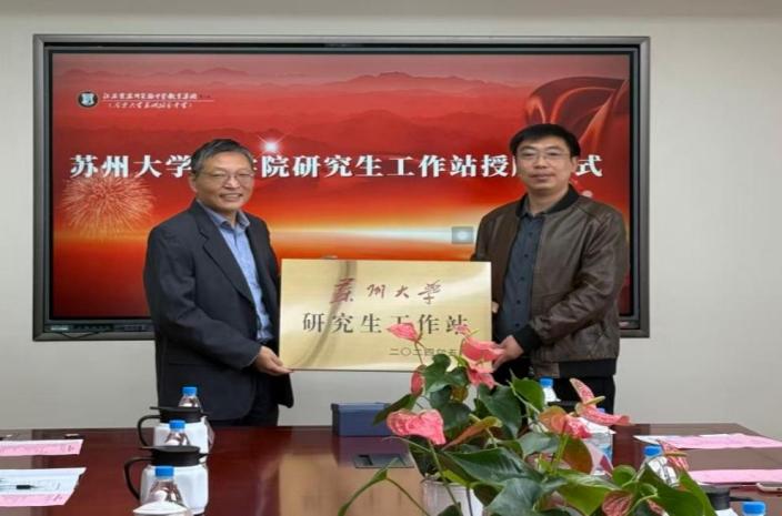 为共同搭建创新人才培养平台,积极探索高等教育与基础教育的衔接机制,2025年10月22日上午,楼凤网 党委书记夏凤军,副院长周生杰,副书记、副院长纪金平及相关专业负责人一行赴江苏省苏州实验中学为其研究生工作站授牌。