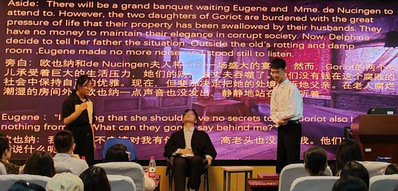 汉语国际教育班带来的《高老头》讲述了金钱对人情世态的腐蚀、欲望泛滥导致的世态炎凉和纸醉金迷造成的道德沦丧。演员感情饱满,展现出人物鲜明的性格特征,将各个细节演绎得淋漓尽致。