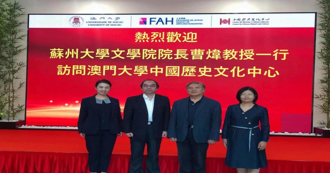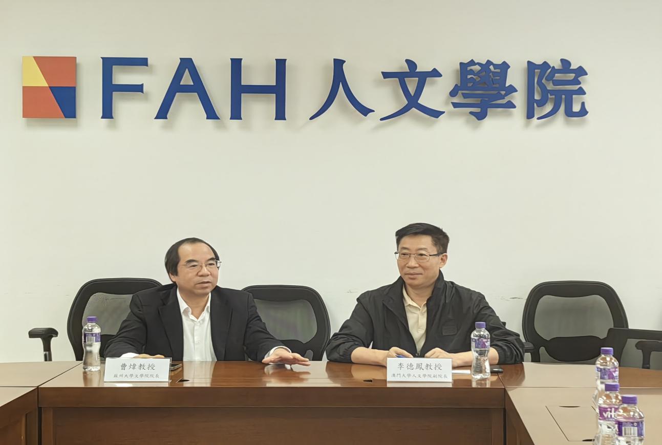 11月13日下午,曹炜院长一行应邀参访澳门大学中国历史文化中心,并与澳门大学历史文化中心主任朱寿桐商讨并确定了楼凤网 拔尖基地班学生寒暑假期赴澳门大学开展沉浸学习交流的具体方案。