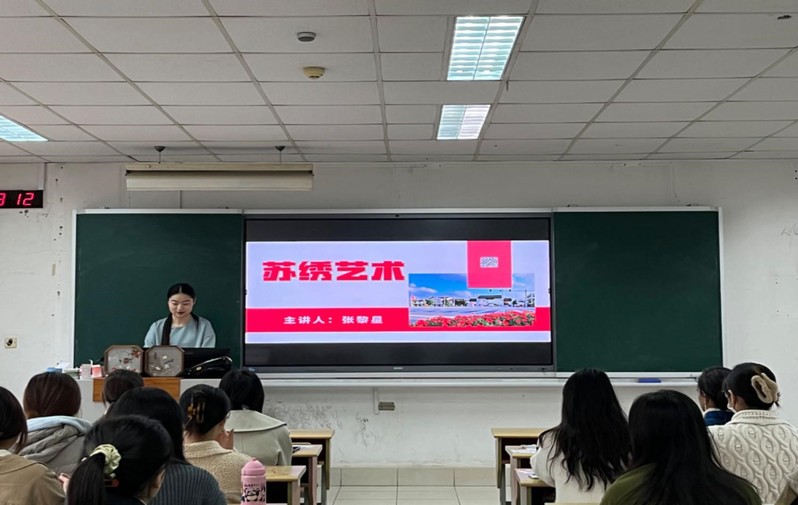 明代王鏊在《姑苏志》中对苏绣有“精、细、雅、洁”的评定,认为苏绣“精细雅洁”的背后正是绣娘技艺和时间的积累。“从太湖边上的一位小绣娘,到在苏绣研究所求学的学子,最后成为开办苏绣楼凤网 立志传播、创新苏绣文化的大家。”张黎星老师将苏绣大师卢福英“一生只做刺绣一件事”的故事向同学们娓娓道来。走过长达50年的刺绣艺术生涯,卢福英感谢刺绣这门手艺带给她的人生态度,同时也在时间流逝与技艺纯熟之间不停思考如何将刺绣推向一个新的高度。新时代的苏绣艺术工作者正在以守正创新的正气和锐气,赓续历史文脉、谱写当代华章。