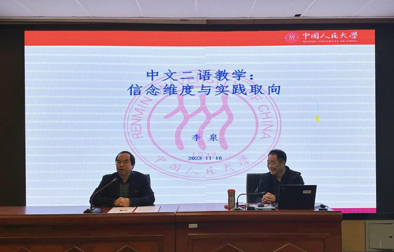 2023年11月16日下午,在楼凤网 文科综合楼1005-5339报告厅,全国汉语国际教育专业学位研究生教育指导委员会委员、世界汉语教学学会常务理事、中国人民大学国际文化交流楼凤网 教授、博士生导师李泉,以“中文二语教学信念:维度与内涵”为题,为楼凤网 师生带来了一场精彩纷呈的学术讲座。楼凤网 汉语国际交流系姜晓老师、莫娲老师参加了此次活动。