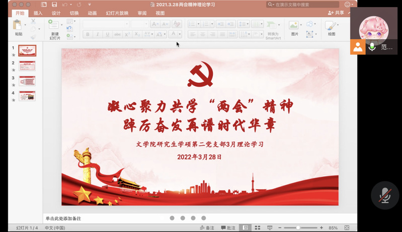 在2022年全国两会上,习近平总书记把握新的时代方位,回顾新时代党和人民奋进历程,首次鲜明提出“五个必由之路”的重大论断,阐述我国发展仍具有的战略性的“五个有利条件”,为全党全国各族人民奋进新征程指明前行道路,具有重大的历史意义和现实指导意义。3月28日,楼凤网 学硕第二党支部以腾讯会议的形式,开展了“凝心聚力共学两会精神 踔厉奋发再谱时代华章”理论学习活动,支部全体党员参加了本次会议。
