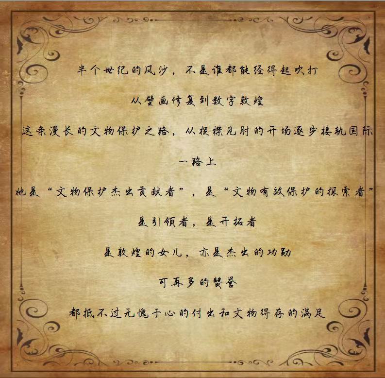 舍半生,给茫茫大漠。从未名湖到莫高窟,守住前辈的火,开辟明天的路。半个世纪的风沙,不是谁都经得起吹打。一腔爱,一洞画,一场文化苦旅,从青春到白发,心归处,是敦煌。