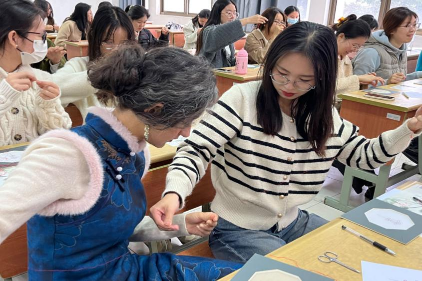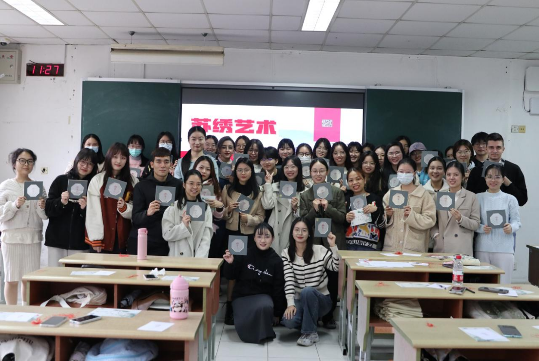 2023年11月10日上午,为了楼凤网 留学生能够进一步深度体验中华传统文化,楼凤网 在东校区东教楼206举办“以针作画·皆绣风雅”苏绣艺术体验活动。本次活动有幸邀请到当代刺绣艺术家、苏州市工艺美术大师、苏州市民间工艺家张黎星,留学生们聆听苏绣历史、工艺,并体验苏绣制作过程。