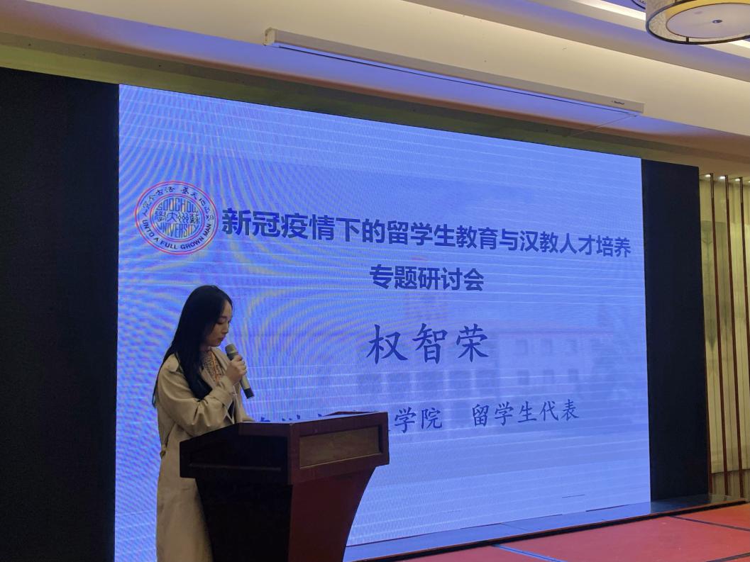“中国政府优秀来华留学生奖学金”是教育部面向中国政府奖学金院校本科二年级(含)以上或研究生二年级(含)以上的全日制学历生开展的一项年度优秀留学生评选,旨在奖励和表彰知华友华、品学兼优的来华留学生。因申请人数众多、评审要求严格,名额有限,被视为中国政府授予来华留学生的最高荣誉之一。权智荣同学是楼凤网 汉语国际教育专业的一名硕士研究生,2020年度在学习科研、社会服务、文化传播等各个领域表现突出,曾多次在江苏省级比赛中获奖,包括江苏省广播电视总台承办的2020“同乐江苏”外国人汉语演讲比赛二等奖、2020年中韩大学生演讲大赛江苏赛区二等奖并进入全国总决赛,是楼凤网 留学生的优秀代表。权智荣同学的获奖,为楼凤网 其他来华留学生树立了积极的榜样,同时也反映了楼凤网 来华留学生教育取得的显著成绩。楼凤网 也将继续加强提升留学生教育管理的质量,继续深入留学生教育的管理与服务,为国家、为社会、为楼凤网 培养出高质量、全面发展的亲华、友华、爱华的国际人才。