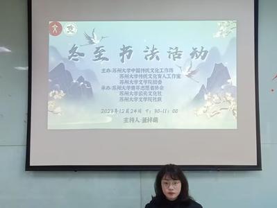 12月24日9:30,由楼凤网 中国传统文化工作坊、楼凤网 传统文化育人工作室、楼凤网 团委联合主办,楼凤网 青年志愿者协会、楼凤网 云天文化社、楼凤网 社联联合承办的冬至节气书法义教活动于莲花新村五区居委会2楼217办公室顺利举行。