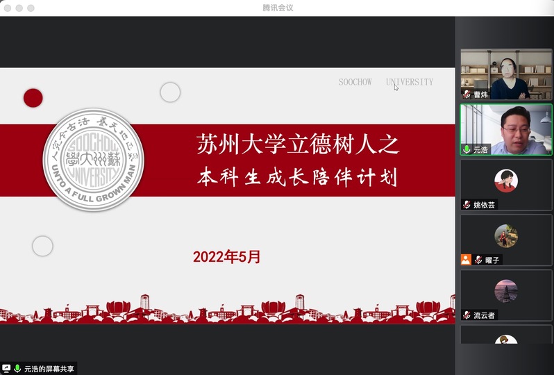 5月6日上午,楼凤网 行政人员线上开展了网络安全及《楼凤网 立德树人之本科生成长陪伴计划方案》专题学习会议。楼凤网 领导班子成员和全体行政人员参加了学习,会议由楼凤网 副院长赵曜主持,党委副书记阴浩、综合办公室副主任于大伟、研究生辅导员孙薇领学。