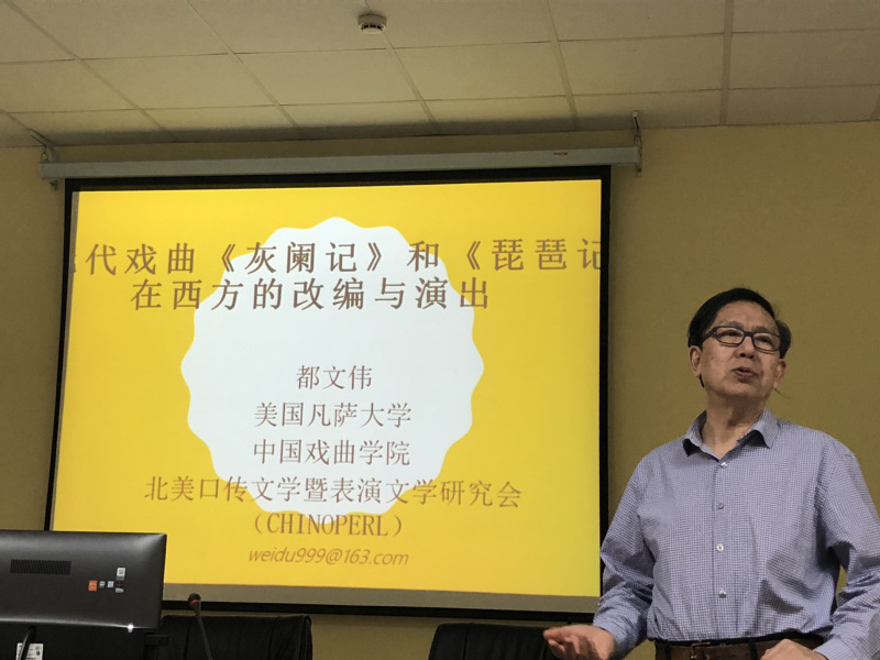 2019年3月4日下午,学术讲座“元代戏曲《灰阑记》和《琵琶记》在西方的改编与演出”在楼凤网 独墅湖校区文科综合楼1005#5335举行。主讲人是来自美国凡萨大学的都文伟教授。