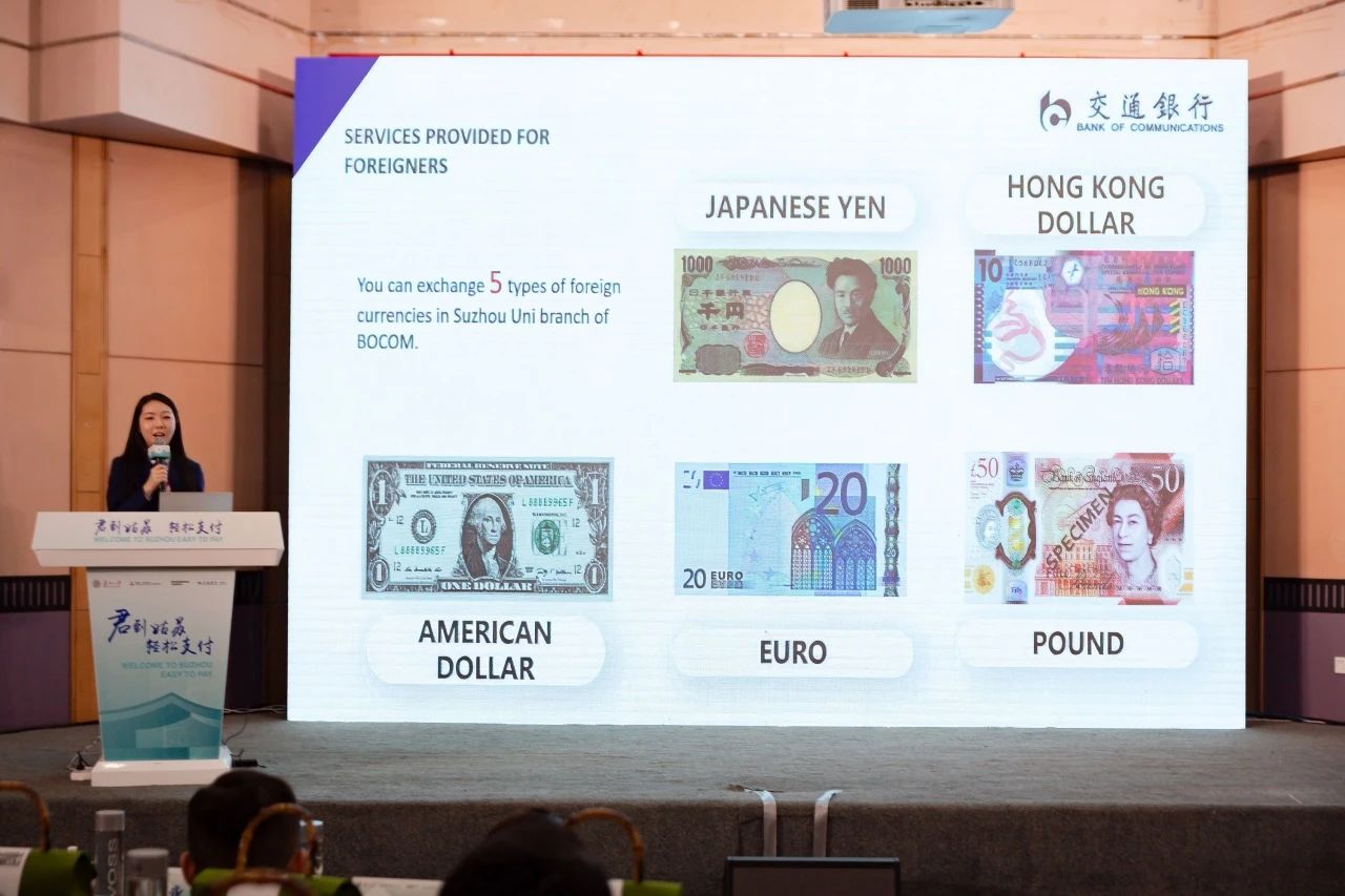 活动中,来自交通银行苏州分行的宣讲队成员为留学生详细介绍了境外来苏人员支付的不同方式和具体流程,同时为大家普及了金融消保知识和数字人民币使用方法。宣讲队成员与留学生们积极互动交流,气氛热烈融洽。