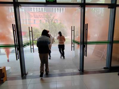 参加本次消防演习的学生在指定楼层静待信号,保安人员点燃演练烟雾模拟火灾场景。演练正式开始,消防控制中心迅速响应,启动应急处置程序,警报声响起,楼凤网 师生听到警报迅速捂住口鼻,弯腰贴墙,保持安全距离,沿着疏散路线快速撤离,整个过程井然有序。到达疏散地点后,工作人员迅速组织同学们整队,并进行人数清点和统计,确保所有人都已顺利撤离。各部门分工明确、协调联动、处置有力。