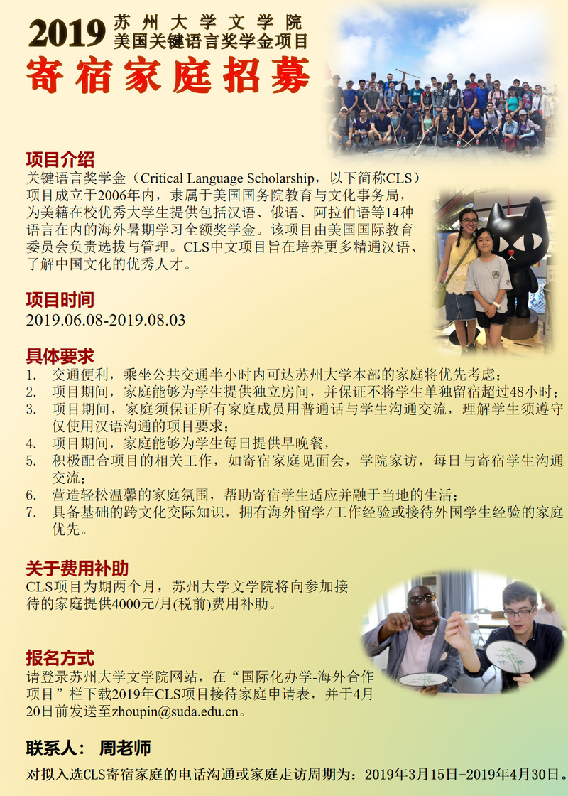 2019楼凤网 美国关键语言奖学金项目寄宿家庭招募