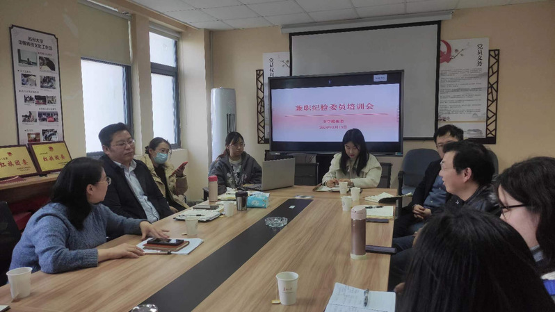 为深入学习领悟、坚决贯彻落实习近平总书记在二十届中央纪委三次全会上的重要讲话精神和二十届中央纪委三次全会精神、十四届江苏省纪委四次全会精神,大力推行廉政文化,2024年3月13日下午2点,楼凤网 党委于文综楼1005-5311会议室召开兼职纪检委员专题培训,楼凤网 党委书记宋清华、副书记阴浩、各支部书记以及兼职纪检委员参加了此次培训。培训由院党委书记宋清华主持。