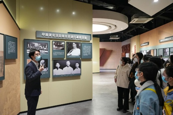 为扎实开展“强国复兴有我,砥砺奋斗前行”学习宣传党的二十大主题宣传教育活动,进一步深化党史学习教育,更好地汲取党的百年奋斗经验,楼凤网 研究生党支部与中共苏州市委党史工作办公室举办了“强国复兴有我——我是党史记录人”苏州党史教育基地数字展进高校活动。楼凤网 研究生学硕第一党支部、学硕第三党支部全体党员来到了苏州的红色起点——中共苏州独立支部旧址。