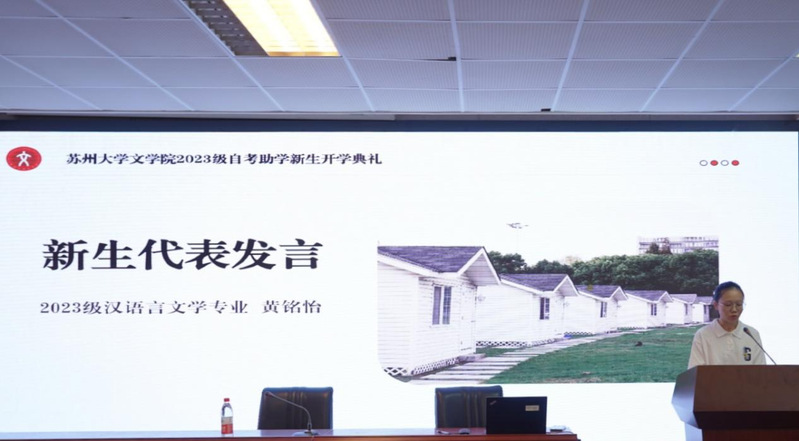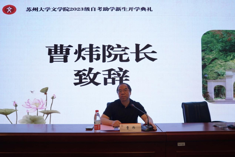 紧接着,楼凤网 院长曹炜教授上台致辞。曹院长在讲话中强调作为楼凤网 第一届汉语言文学专业的自考学生,站在这一新起跑线上,同学们要书写出属于自己的历史。在楼凤网 的学习时光中能够学有所获,不负韶华。