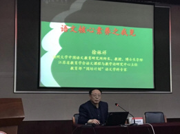 扬州大学徐林祥教授作了《语文核心素养之我见》报告。徐林祥教授在报告中对语文核心素养的内涵及其内在逻辑作了新的探讨,指出,“汉语言建构与运用”是整个语文学科核心素养或语文学科关键能力体系的根基;“汉语言思维发展与提升”是整个语文学科核心素养或语文学科关键能力体系的中心;“汉语言审美鉴赏与创造”是“汉语言文化传承与理解”的重点;“汉语言文化传承与理解”是整个语文学科核心素养或语文学科关键能力体系的组成部分。徐林祥教授指出,提出语文核心素养意味着课程与教学观念的转变:课程即问题,教学即研究。徐林祥教授最后说,基于语文核心素养的课程教学已经潜在于优秀教师的教学实践中,需要我们梳理阐释,提升完善,发扬光大。