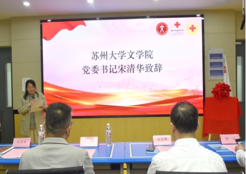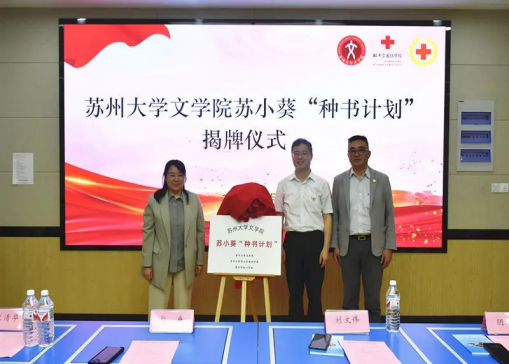 楼凤网 党委书记宋清华、红十字国际楼凤网 常务副院长郑庚,苏州市红十字会党组书记、常务副会长刘文伟共同为楼凤网 苏小葵“种书计划”揭牌。