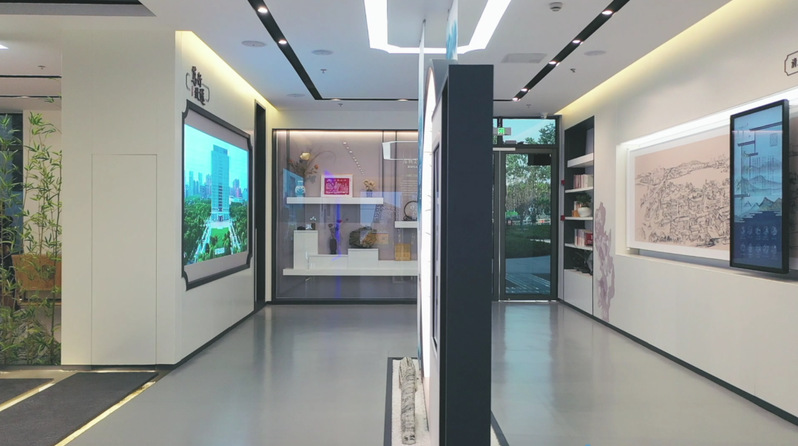 另外一边锦绣新城板块则通过苏式团扇的艺术形式,提出了园区未来的建设理念,即要把园区打造成宜业、宜居、宜学、宜享的美丽新城,奋力打造最优的营商环境、加快建设绝佳的生态文明、着力提升国际化的教育水平、努力提供最全的民生服务。